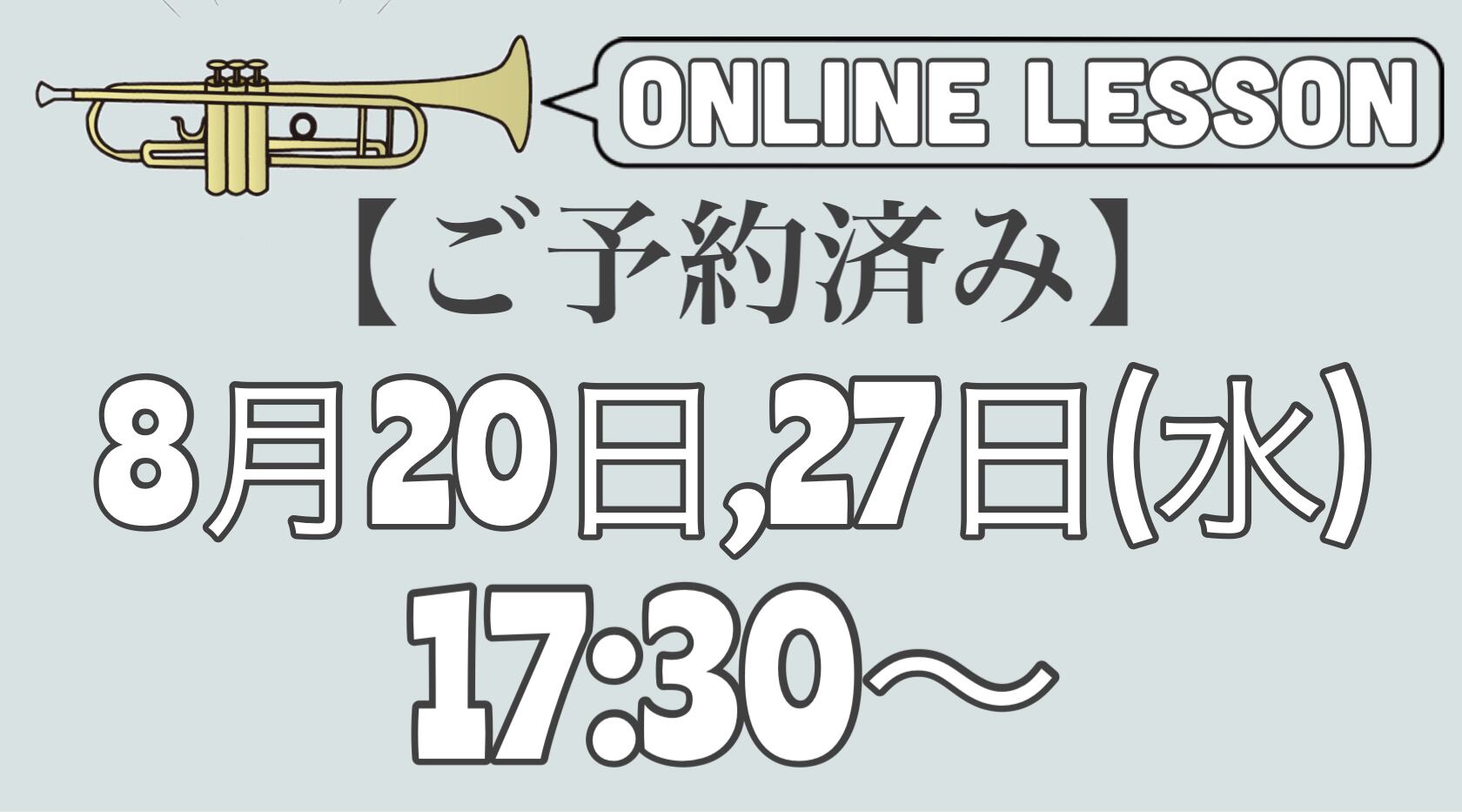 【ご予約済みトランペットオンラインレッスン】8月20日、27日(水)17:30