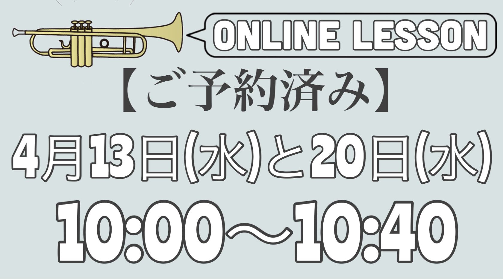 【ご予約済みトランペットオンラインレッスン】4月13日(水),20日(水)10時〜10時40分