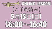 【ご予約済みトランペットオンラインレッスン】5月15日(日)16時〜16時40分