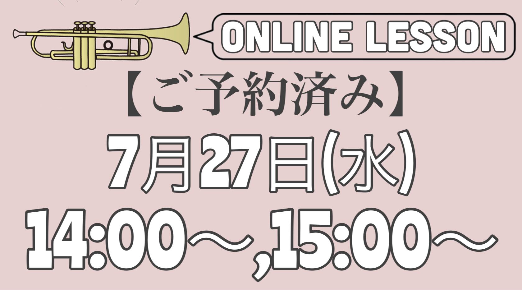 【ご予約済みトランペットオンラインレッスン】7月27日(水)14時〜,15時〜