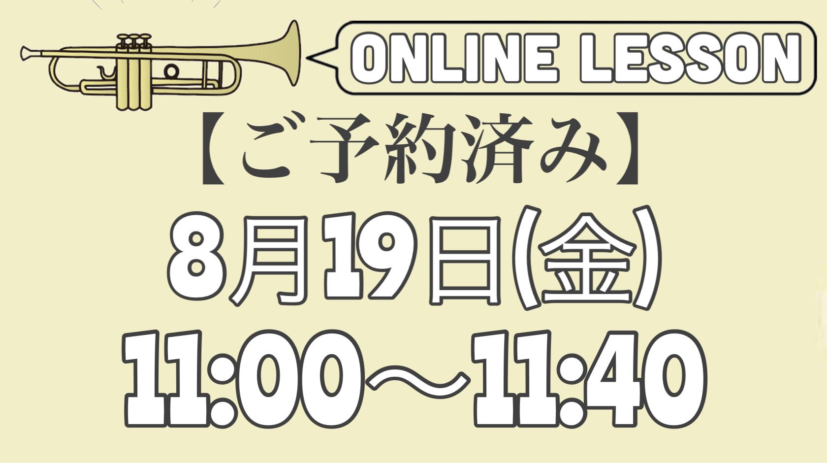 【ご予約済みトランペットオンラインレッスン】8月19日(金)11時〜11時40分