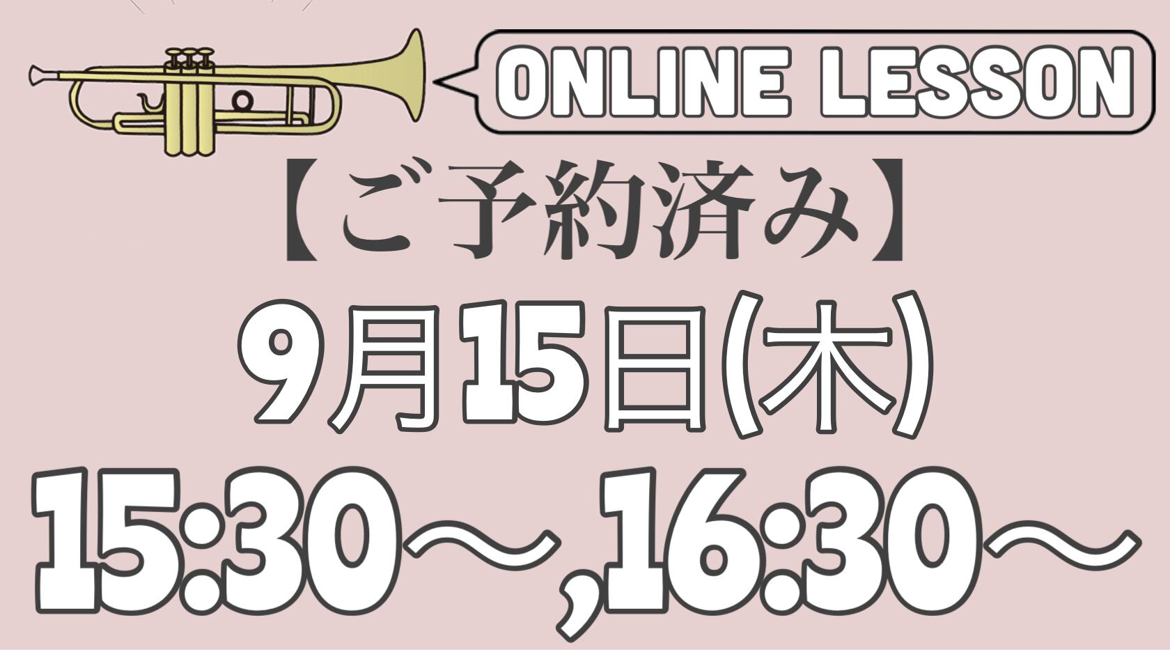 【ご予約済みトランペットオンラインレッスン】9月15日(木)15時30分〜,16時30分〜