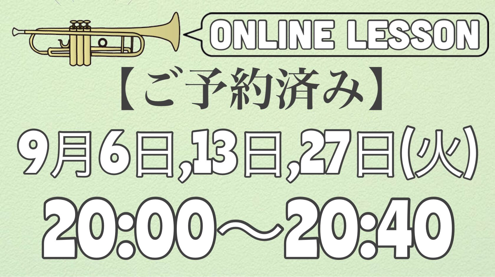 【ご予約済みトランペットオンラインレッスン】9月6,13,27日(火)20時〜20時40分