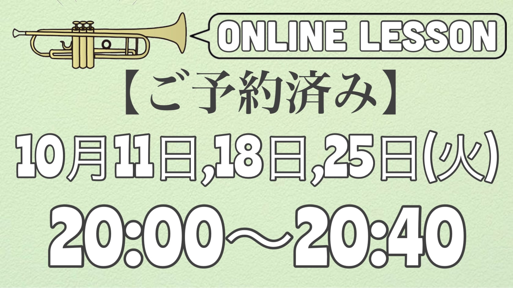 【ご予約済みトランペットオンラインレッスン】10月11,18,25日(火)20時〜20時40分