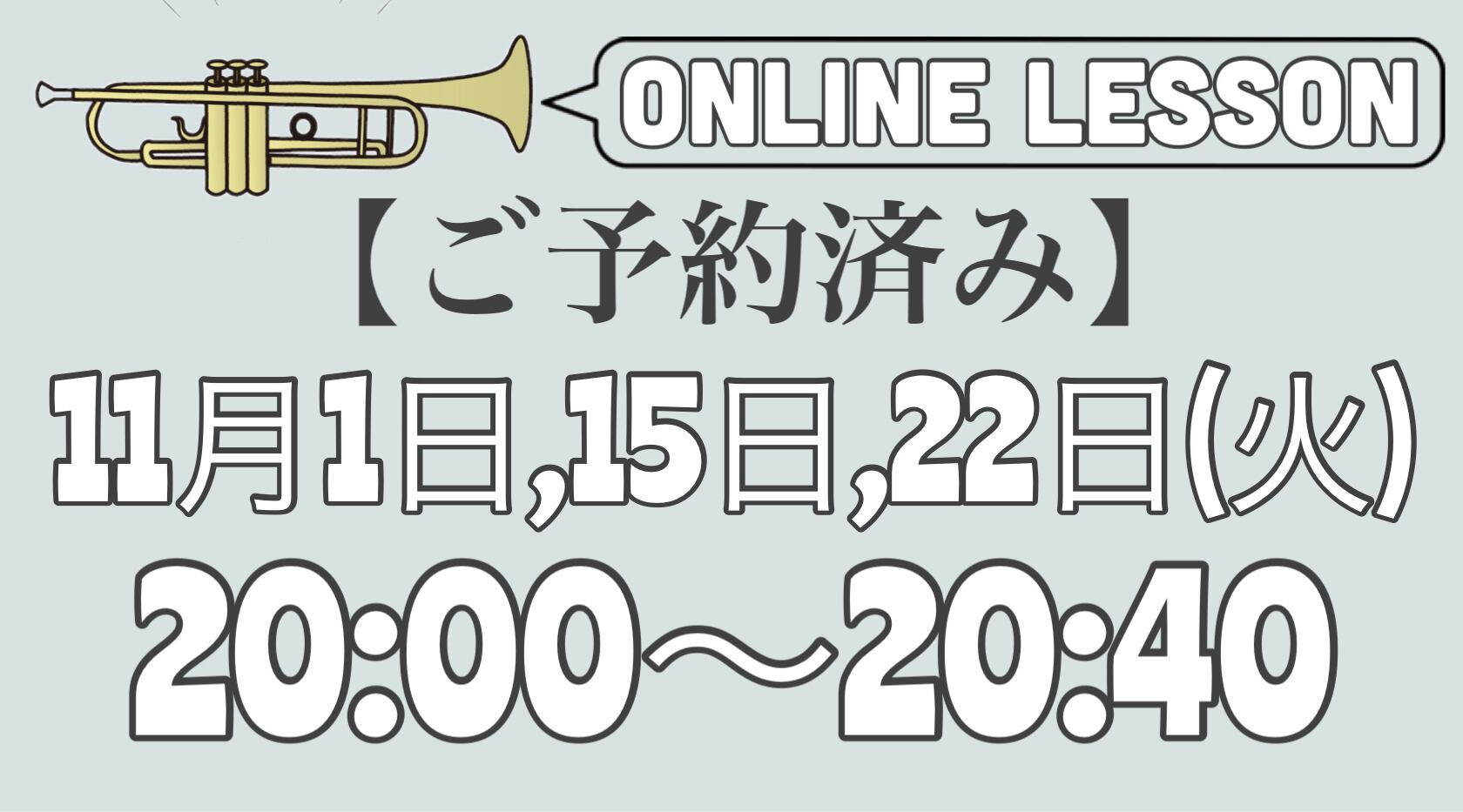【ご予約済みトランペットオンラインレッスン】11月1,15,22日(火)20時〜20時40分