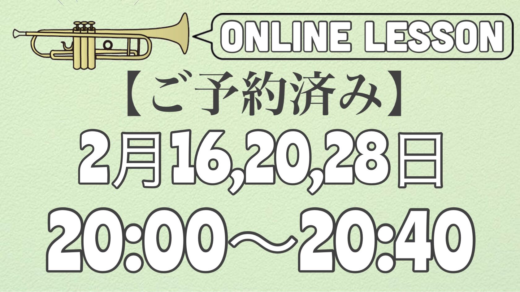 【ご予約済みトランペットオンラインレッスン】2月16,20,28日20時〜20時40分