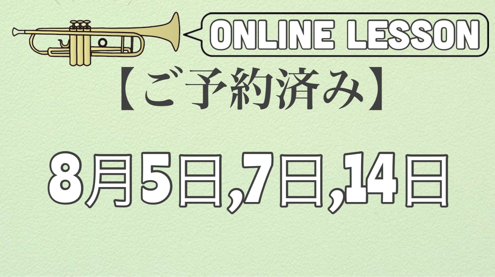 【ご予約済みトランペットオンラインレッスン】8月5日(月),7日(水),14日(水)